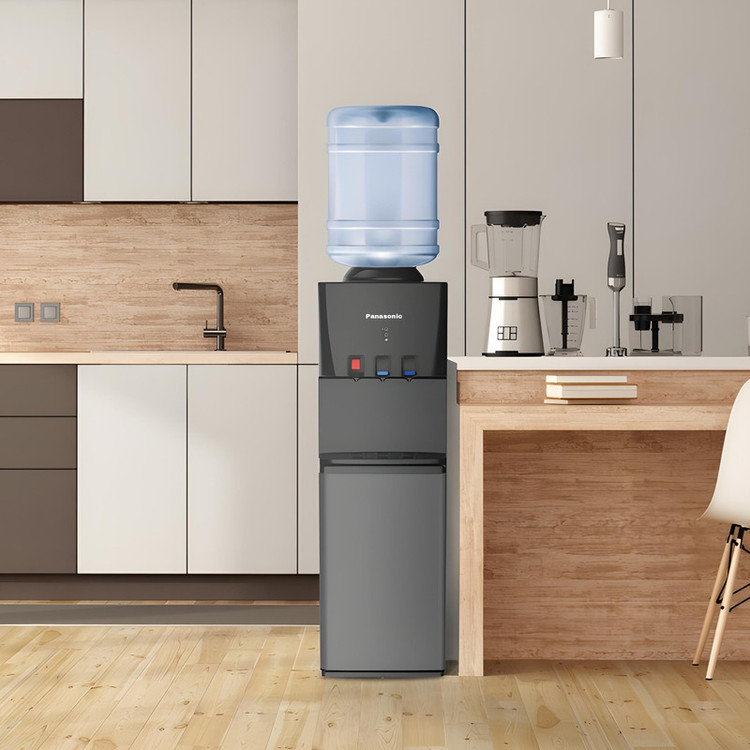 آبسردکن پاناسونیک مدل SDM-WD3320TG یکی از آبسردکنهای خوشساخت و کاربردی است که در قسمت پایین آبسردکن یک کابین یخچالی با گنجایش بیست لیتر در نظر گرفته شده است. این دستگاه از طراحی ظاهری ساده، زیبا و شکیلی بهره میبرد. آبسردکن پاناسونیک مدل SDM-WD3320TG دارای دو خروجی آب سرد و گرم است خروجی آب گرم این مدل مجهز به قفل کودک است تا ایمنی کار با دستگاه حفظ شود. همچنین این دستگاه مجهز به سینی چکهگیر در قسمت قرارگیری لیوان است که از ریزش آب روی سطح زمین جلوگیری میکند. آب خروجی آن فشار نسبتا خوبی دارد. از دیگر مزایای آبسردکن پاناسونیک مدل SDM-WD3320TG مخزن آب گرم آن است که از جنس استیل ضدزنگ بوده و این باعث طول عمر بیشتر آن مخزن می شود. آبسردکن پاناسونیک مدل SDM-WD3320TG دارای شیر خروجی آب سرد، گرم و ولرم است. مخزن آب 20 لیتری در بالا قرار گرفته و قابل جابجایی یا تعویض کردن است. آبسردکن پاناسونیک یخچالدار با کابین 20 لیتری جهت نگهداری مواد غذایی، نوشیدنی و هر نوع غذای فاسد شدنی در دمای پایین. این دستگاه ایستاده بوده و با بدنه استیل و ضد لکه ساخته شده است. بدنه فوق العاده محکم با فناوری ضد لکه و هیچ اثر انگشتی بر روی آن باقی نخواهد ماند. دارای سیستم های امنیتی قفل کودک و اور هیت برای پیشگیری از جوش آوردن بویلر در نظر گرفته شده است و به صورت خودکار خاموش می شود. سه شیر خروجی برای آب سرد، گرم و ولرم نیز دارد